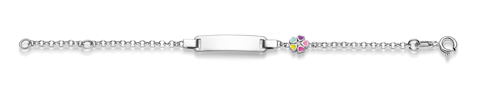 Beschreibung: Id-Armband mit Zirkonia Blüte, aus 925/rh Silber.