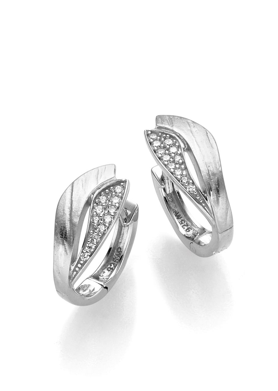 Beschreibung: Creolen mit Zirkonia, aus 925/rh Silber.
