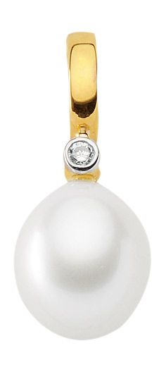 Einhänger für Kette aus Gold mit Brillant und Süßwasserperle (Zuchtperle)