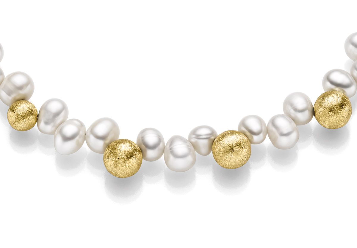 Vergoldetes Silbercollier mit Süßwasserperle (24-409)