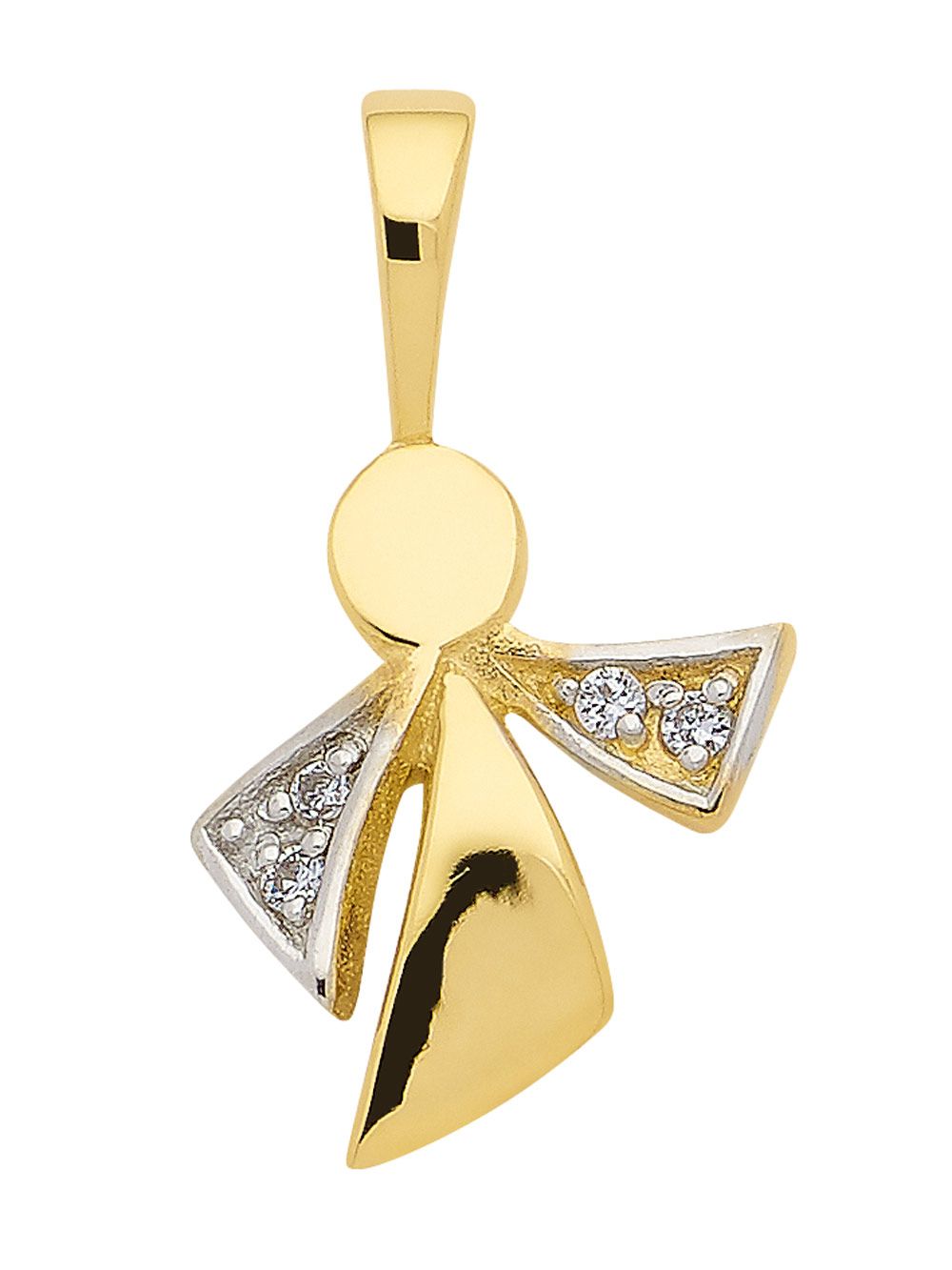 Engel Anhänger mit Zirkonia aus Gold rhodiniert