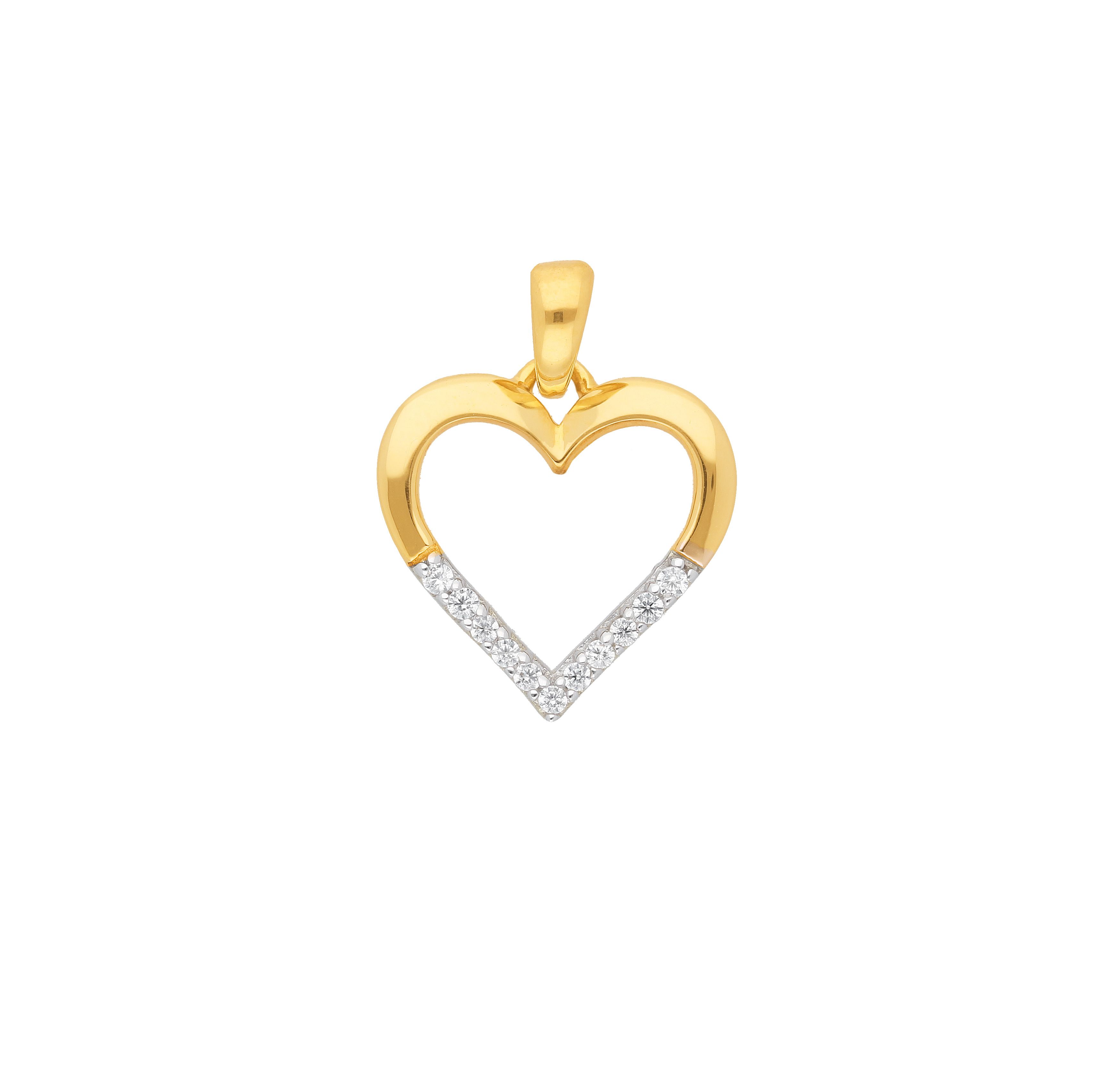 Herz Anhänger mit Zirkonia aus Gold rhodiniert