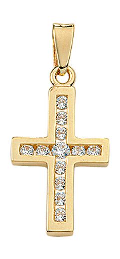Kreuzanhänger aus Gold mit Zirkonia