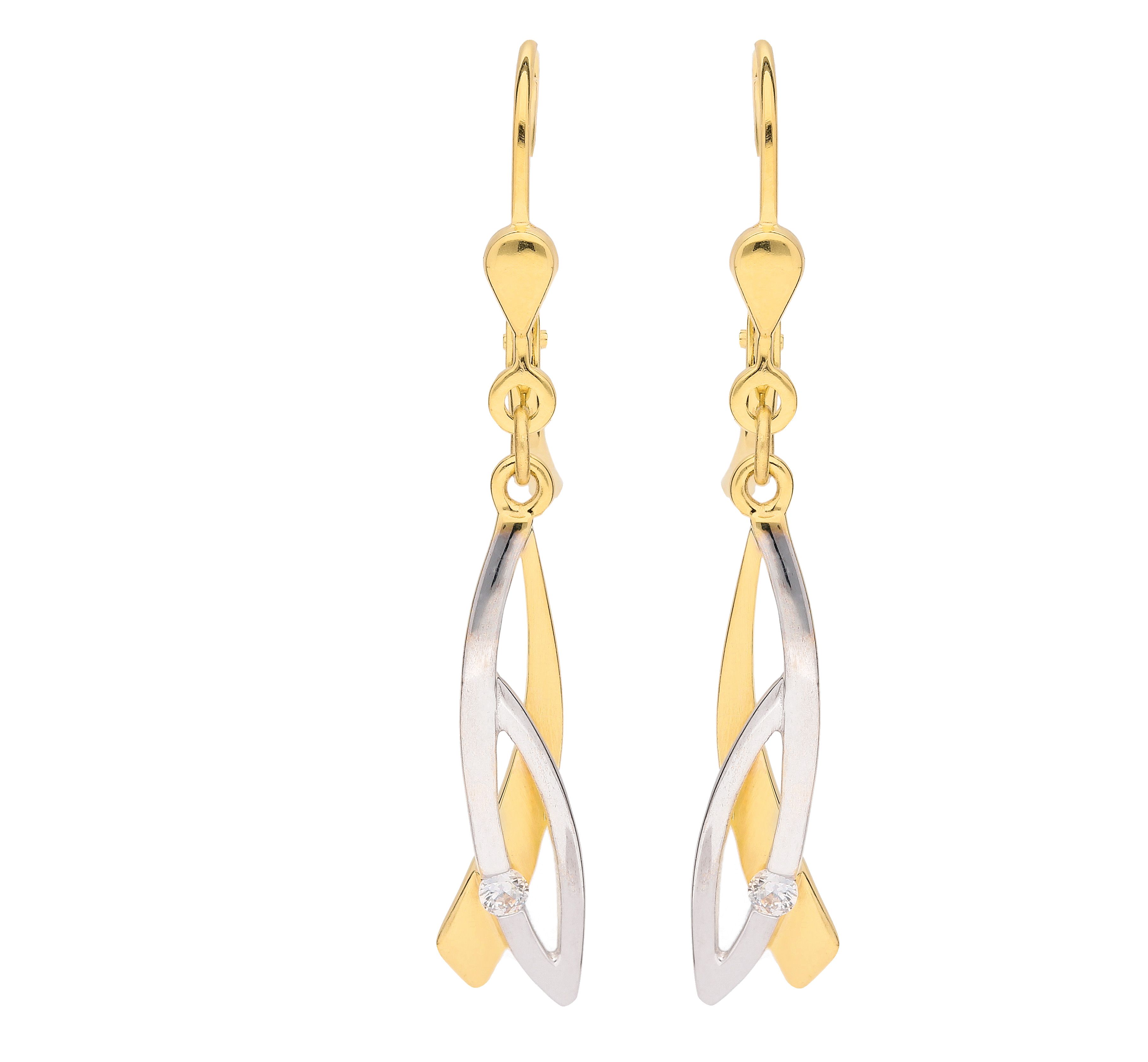 Ohrhänger mit Zirkonia aus Gold rhodiniert
