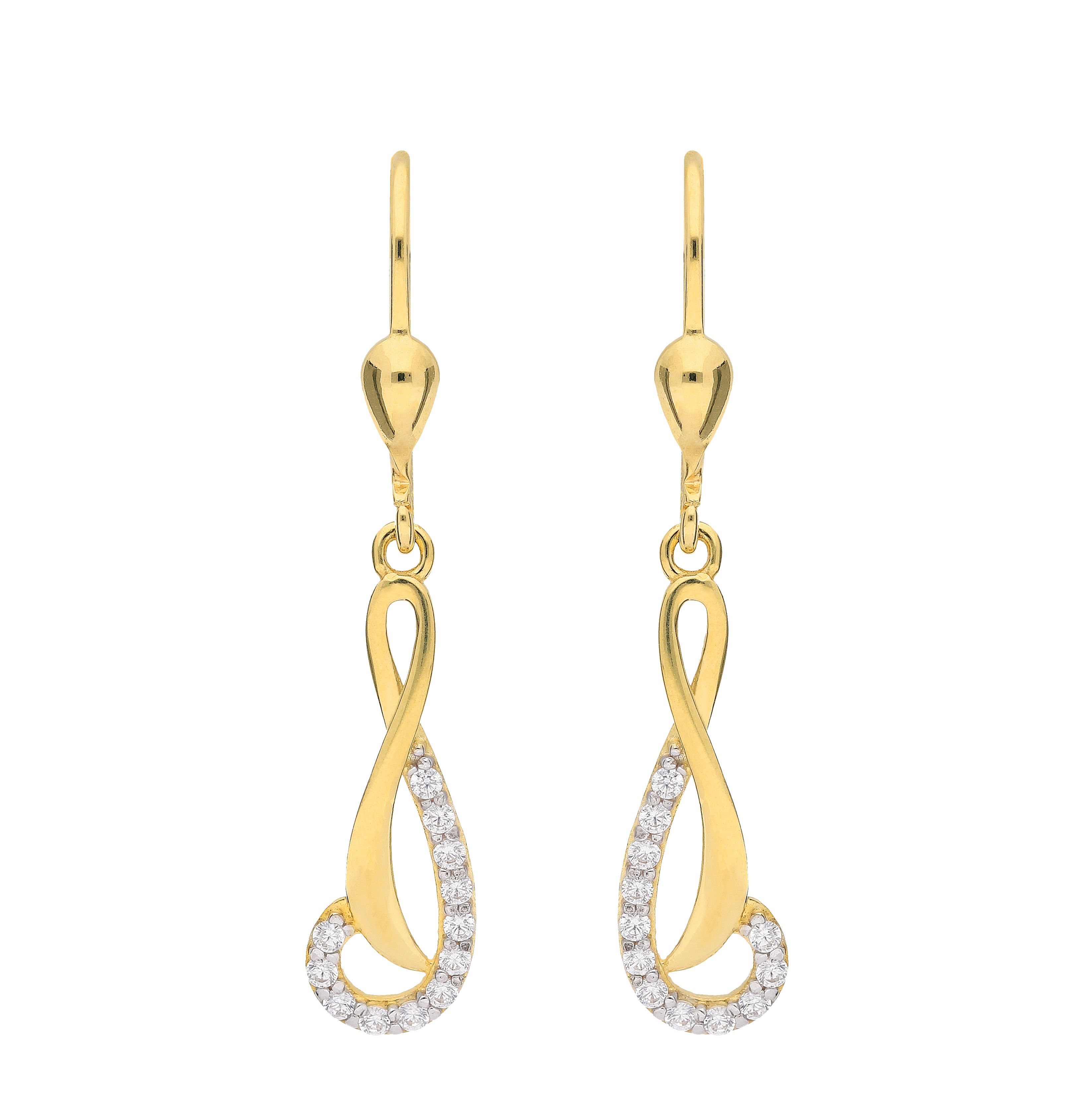 Ohrhänger mit Zirkonia aus Gold rhodiniert