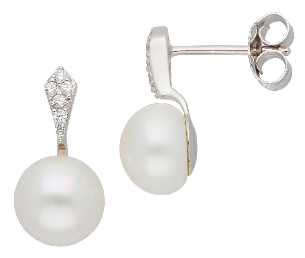 Ohrstecker aus Silber mit Süßwasserzuchtperle und Zirkonia