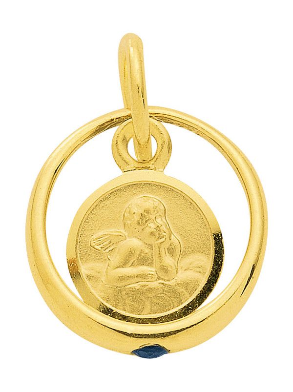 Taufring Kettenanhänger aus Gold mit Saphir